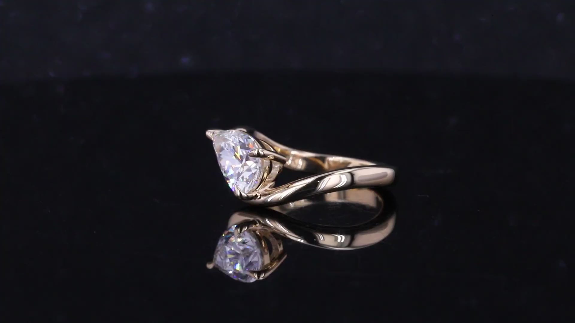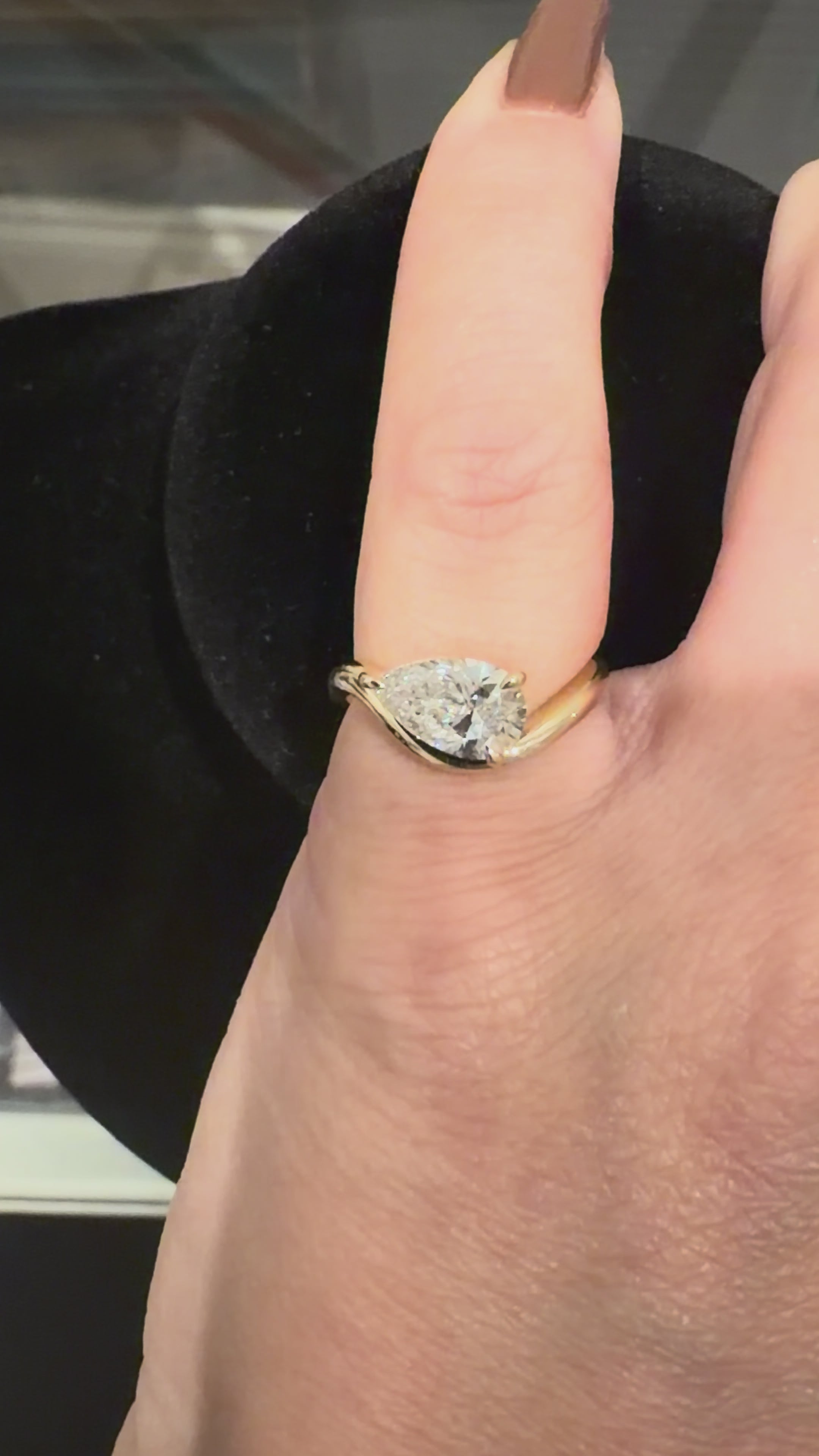 A little swoop of sparkle. This sculptural pear ring features a bright, brilliant 1ctw center stone wrapped in a fluid, modern setting that hugs the diamond just right. It’s eye-catching on its own, but also plays beautifully in a stack — soft, unique, and effortlessly elegant.